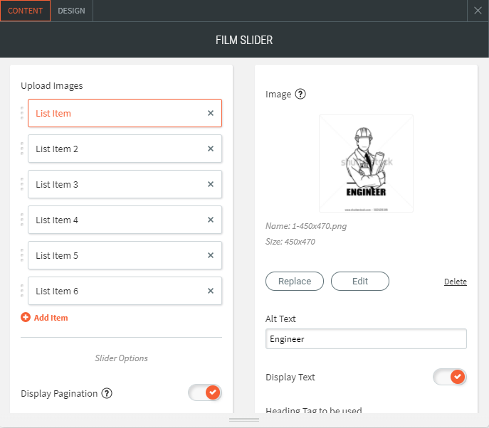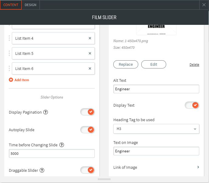 - You can list a lot of images to the film slider and make it a draggable slider